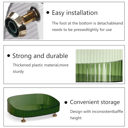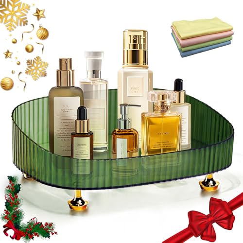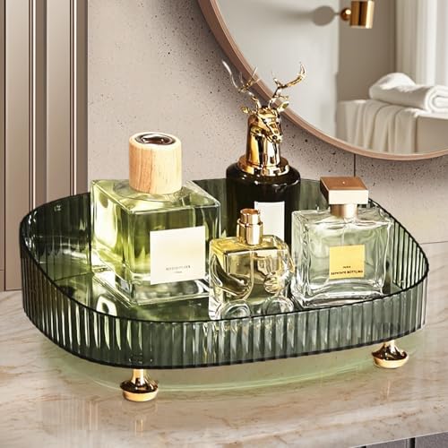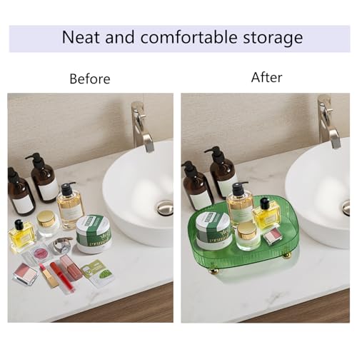 Zolrivo - Perfume Organizer with Dust Cloth, Space-Saving Bathroom Cosmetic Tray with Gold Stands for Dresser, Skincare Lotion & Makeup Holder for Vanity, Bedroom, and Countertop (Green)
