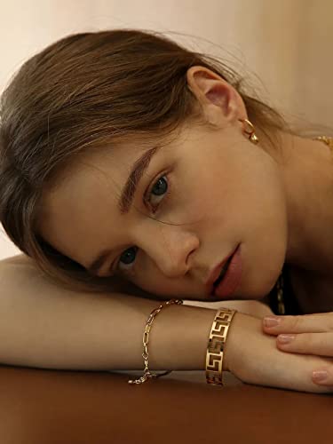 PERNNLA PEARL - PERNNLA PEARL Dainty Gold Bar Bracelet for Women Simple Delicate Thin Cuff Bangle Hook Bracelet 18K Gold Plated Handmade Minimalist Jewelry
