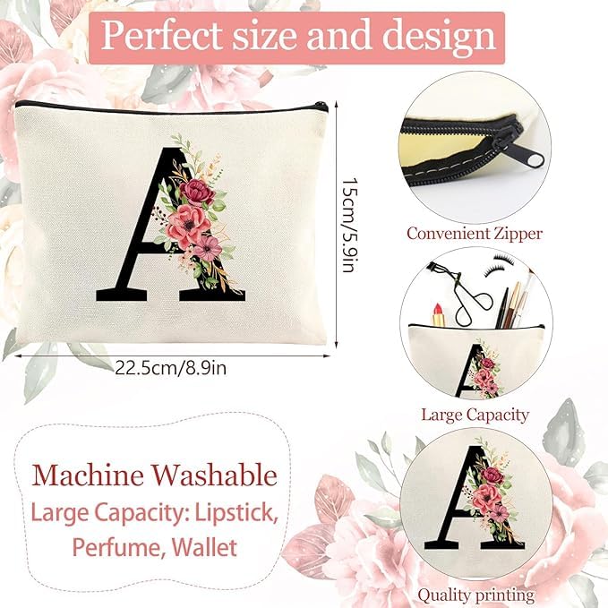 Generic - Personalised Gift with Letters Cotton Bag with Bag Initials Flower Tote Bag Cosmetic Bag Shopping Bag for Women Girlfriend Bridesmaid Gift for Birthdays, Christmas