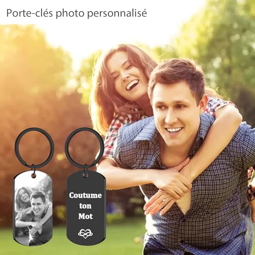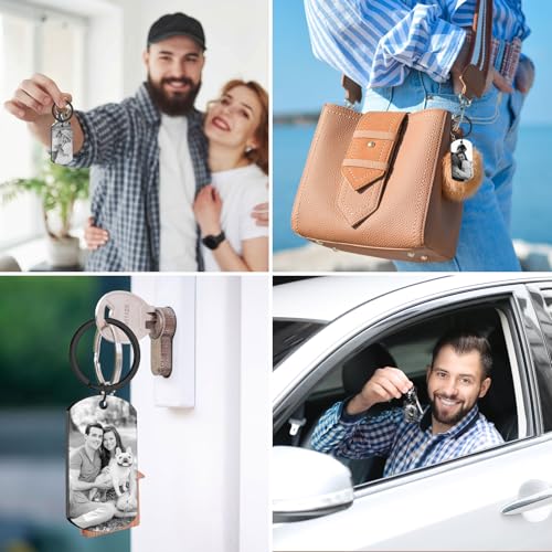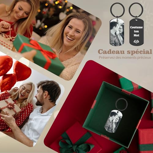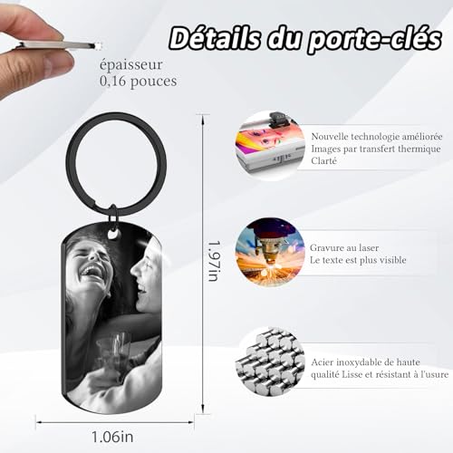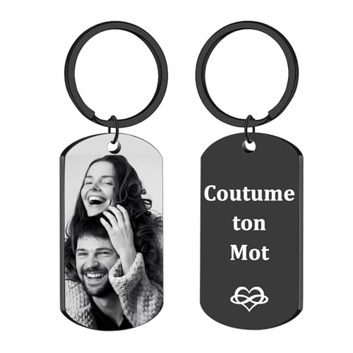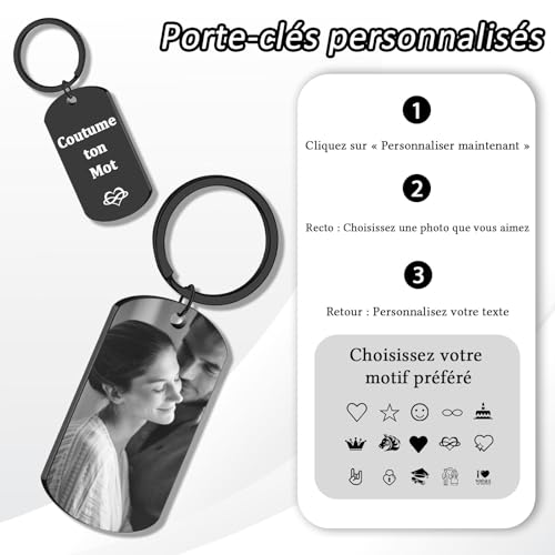 FKF - Personalised Keyring with Photo and Icon Engraving, Personalised Couple Heart Keyring Gift for Boyfriend, Girlfriend, Mom, Dad, Christmas, Valentine's Day