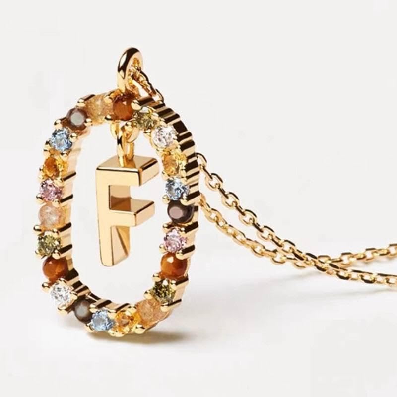 Generic - Personalized Alphabet Charm - Handcrafted gold charm with a custom alphabet letter set in an oval backdrop accented by crystals—perfect for gifting or adding a personal sparkle to any outfit.