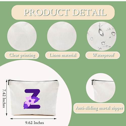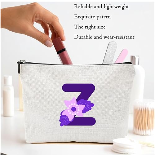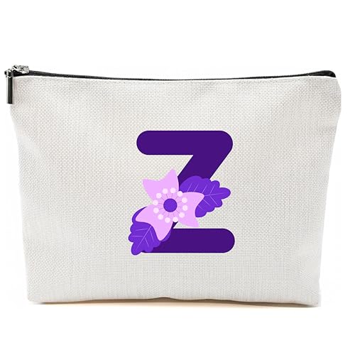 Generic - Personalized Initial Letter Makeup Bag, floral Initial Cosmetic Bag with Zipper Birthday Gifts for Women Girls, purple letter (Z)