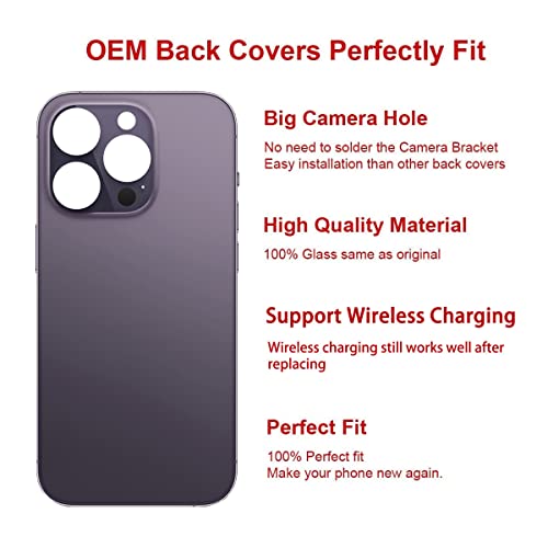- 【Brand New and High Quality】OEM Back Glass Replacement (Deep Purple) Compatible with iPhone 14 Pro 6.1 inches.Tested one by one by professional technicist before shipping. This replacement back door will repair your cracked, damaged, scratched phone. Restore the device back to new.