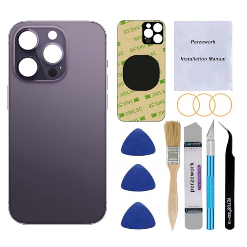 Perzework - OEM Rear Back Glass Replacement for iPhone 14 Pro 6.1 inches with Reparing Tool Kit and Manual (Deep Purple)