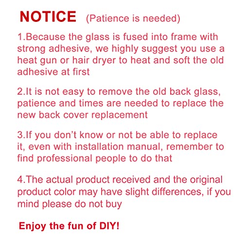 - 【Risk-Free Shopping and Quality Warranty】 one year warranty for this back glass cover replacement. We can send a new rear back glass if you are not 100% satisfied with our products .Please feel free to contact us if you have any questions.