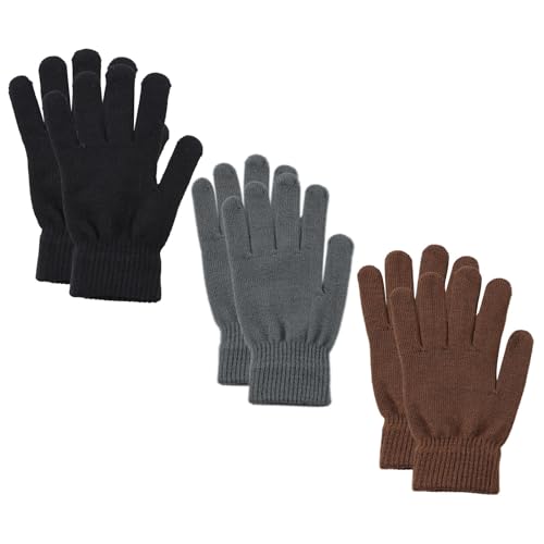 Pesaat - بيسات قفازات كلاسيكية منسوجة بلون سادة للرجال ببطانة من الصوف، قفازات سحرية للخريف واوائل الشتاء، عبوة من 3 قطع