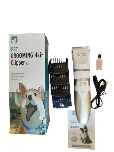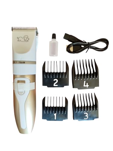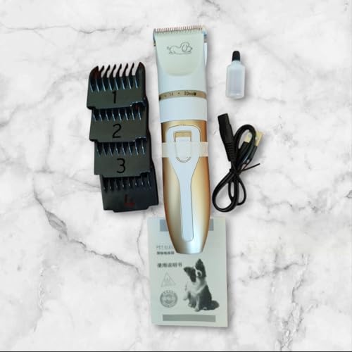 Generic - ماكينة حلاقة شعر الحيوانات الأليفة، قابلة للشحن عبر USB، مع ٤ أمشاط قابلة للتعديل، للكلاب والقطط، ذهبي وأبيض