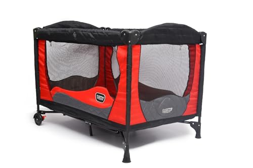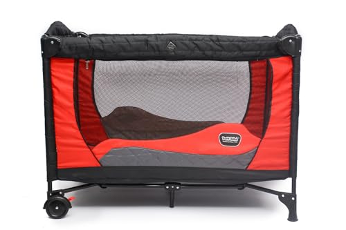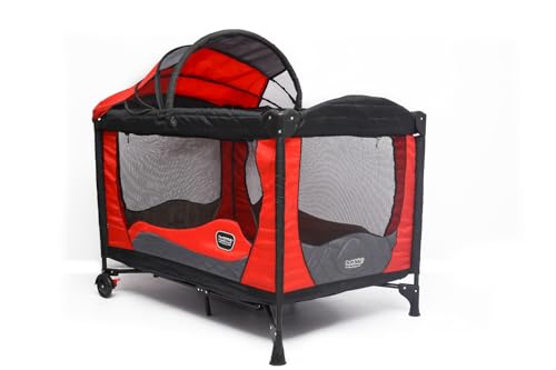 - Adjustable 2-level mattress for newborns and toddlers Removable canopy and breathable mesh sides Waterproof, easy-to-clean fabric Wheels with brakes for easy movement Folds easily with carry bag for travel and storage