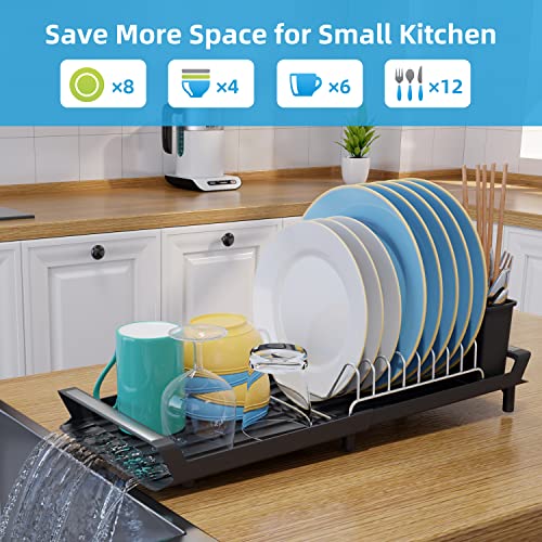 - 【تصميم قابل للتوسيع】رف تجفيف أطباق المطبخ قادر على توسيع لوح التصريف حتى 47.2 سم لمزيد من مساحة التجفيف عند الحاجة. عند سحبها، يمكن استخدامها في الحوض، أو تخزينها في الخزانة إذا لم تكن بحاجة إليها؛ وفر مساحة بشكل مثالي.