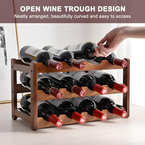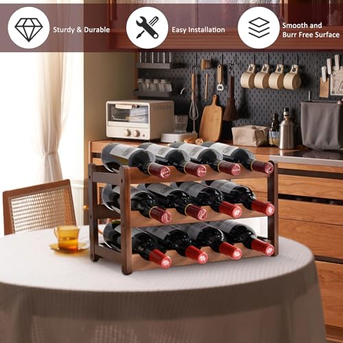 Petyoung - Petyoung 3 Tiers Wooden Wine Rack, Countertop Free Standing Wine Holder Display Shelf for 12 Bottles of Wine, Retro Minimalist Style Home Decorations Wine Display Shelves for Cabinet, Cupboard