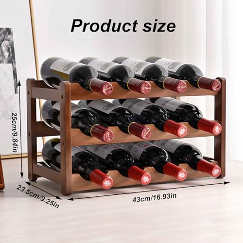 - Space-Saving: Product size: 43*23.5*25cm/16.9*9.3*9.8 inches. Compact size and does not take up much room. Securely holds up to 12 wine bottles; Suits for all standard wine bottle size.