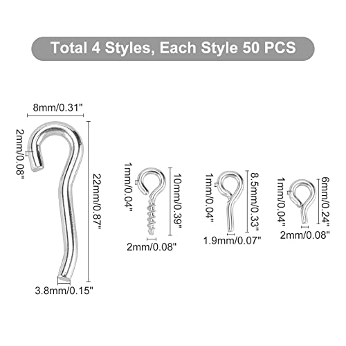 PH PandaHall - PH PandaHall 200pcs Metal Eye Hook Pins 304 Stainless Steel Eyelet Screws 4 Styles Screw Eye Pin Screws Hanging Hooks forOrnament Half Drilled Beads Earring Pendants Jewelry DIY Craft