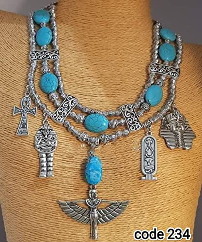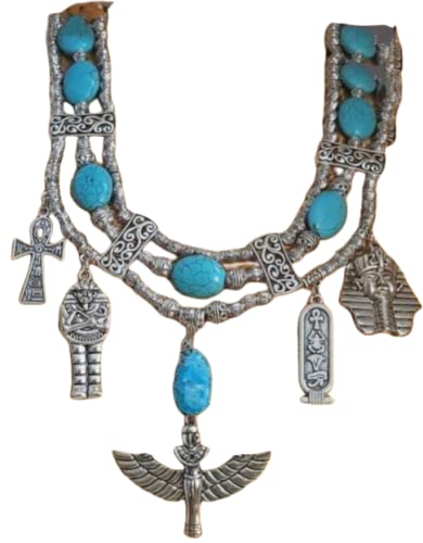 Generic - عقد نسائى شكل فرعونى من النيكل الفضى والفيروز الاكليرك