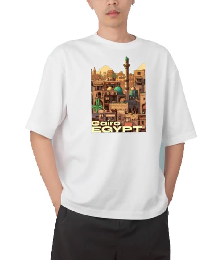 Generic - تي شيرت مطبوع عليه عبارة «pharaons Museum Egyp» وأهرامات الثقافة المصرية، لون أبيض، مقاس 39