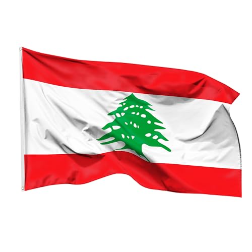 PHENO FLAGS - علم لبنان مقاوم للطقس وبفتحات نحاسية للتعليق على سارية العلم من بوليستر 100% من فينو فلاجز، مقاس 90 سم × 1.50 م