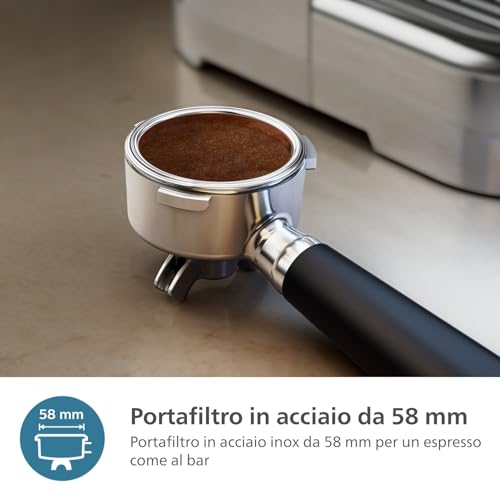 - Brew like a barista: The Philips Barista Brew Espresso Machine gives coffee enthusiasts the opportunity to create barista quality brews with tools such as 58mm portafilter and single & double-walled filter baskets.