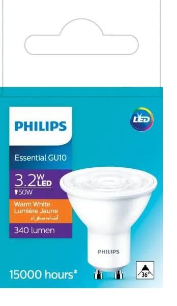 PHILIPS - Philips Essential LED 3.2W=50W GU10 827 36D (2700k) Yellow 300 lumen x 4 Pieces by Orca Store