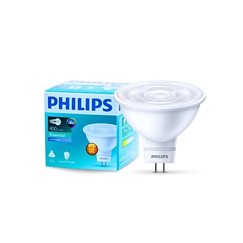 PHILIPS - PHILIPS LED Spotlight Bulb MR16, GU5.3 Base Fork, 4.5 Watt, With Safe Socket, 350 Lumen (Warm, 3000K, 6 Pieces)