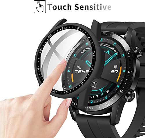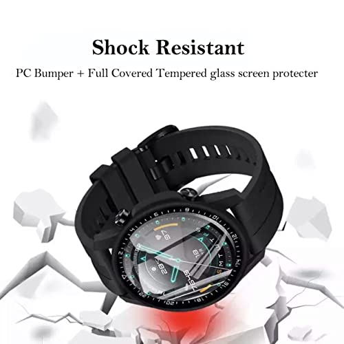 - 2 in 1 Design: Heavy Duty PC Case + Tempered Glass with Screen Protector, Covers the entire front and curved edges of Huawei Watch GT2 46mm, protects against scratches, drops and bumps.