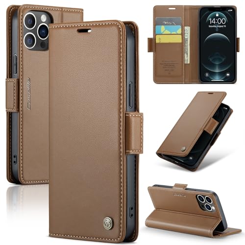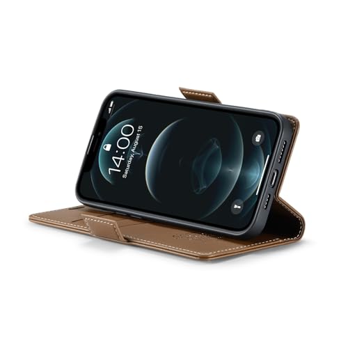 Generic - جراب حماية قلاب من جلد صناعي مع منفذ حامل كروت لموبايل ايفون 12 برو ماكس (لون بني)