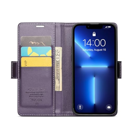 Generic - جراب هاتف متوافق مع IPhone 13 Pro Max فليب من الجلد الصناعي الفاخر وفتحة حامل للبطاقات Purple جلد صناعي أرجواني