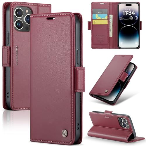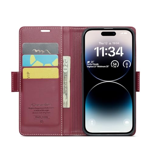 Generic - Phone Case Compatible with IPhone 14 Pro Max Case, Premium PU Leather Flip Case Cover with Card Holder Slot Compatible with IPhone 14 Pro Max (Red)