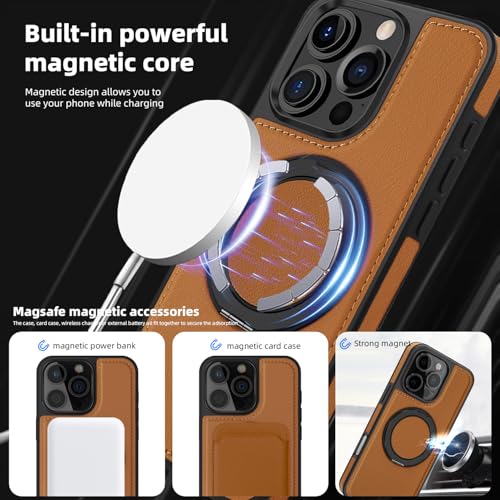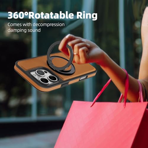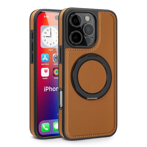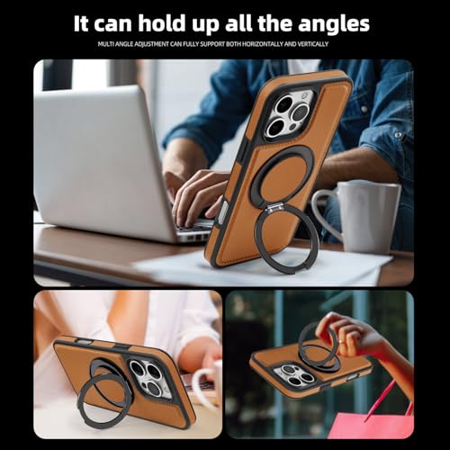 Generic - Phone Case Compatible with IPhone 16 Pro Luxury PU Leather Back Cover Cover With Metal Ring Magnetic Wireless Charging Compatible with IPhone 16 Pro (Brown)