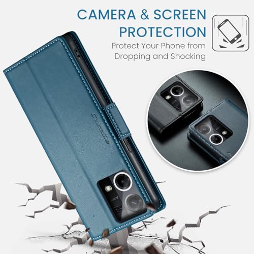 Generic - Phone Case Compatible with Oppo Reno 7 4G / Reno 8 4G Case, Premium PU Leather Flip Case Cover with Card Holder Slot Compatible with Oppo Reno 7 4G / Reno 8 4G (Blue)