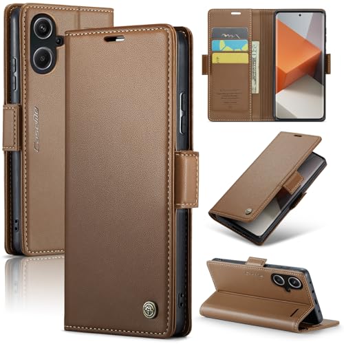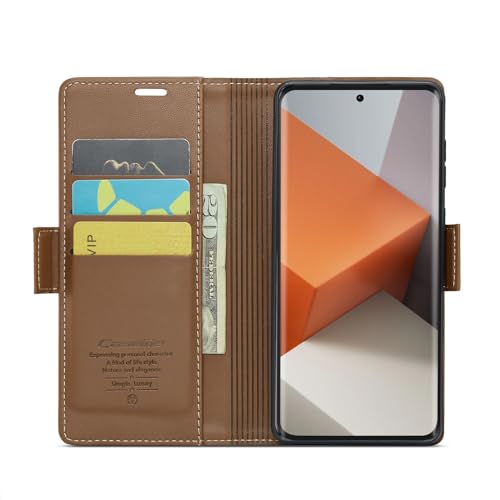 FASCINATION - جراب موبايل متوافق مع ريدمي نوت 13 برو بلس 5G + متعدد الوظائف من جلد البولي يوريثين الممتاز فتحة للبطاقات وحامل ومحفظة لموبايل 5G بني منقلب