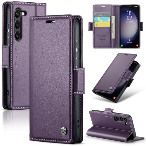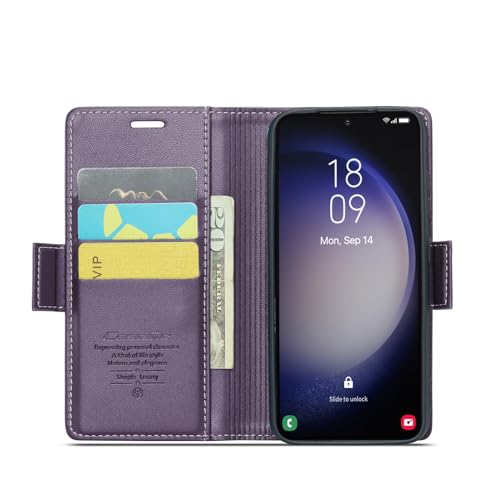 Generic - جراب موبايل من الجلد الصناعي بتصميم غطاء قابل للطي بفتحات للبطاقات متوافق مع موبايل سامسونج جالاكسي S24، لون أرجواني