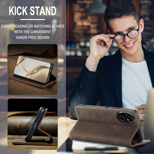 UNBLACK - Phone Case Cover Luxury PU Leather Design 013 Flip Cover Card Slot Holder Cover Compatible with Honor 200 Pro (coffe)