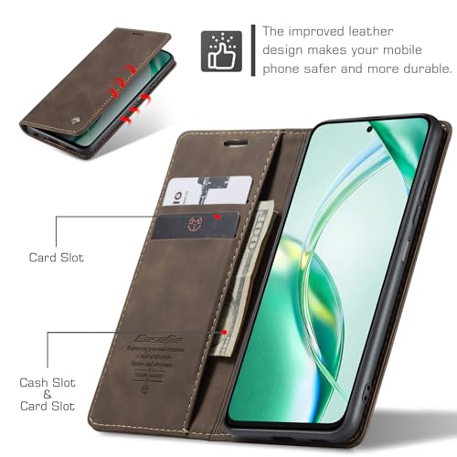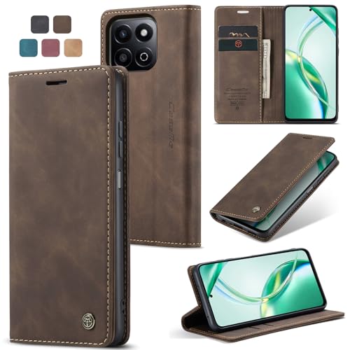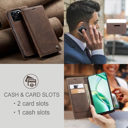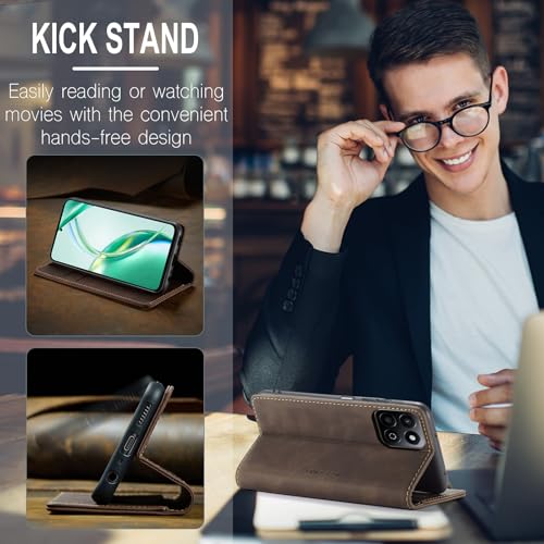 UNBLACK - جراب موبايل قابل للطي من جلد صناعي مزود بفتحة للكروت وتصميم حامل عملي متوافق مع موبايل هونر X7C، هونر 200 الذكي، تصميم 013، لون كوفي