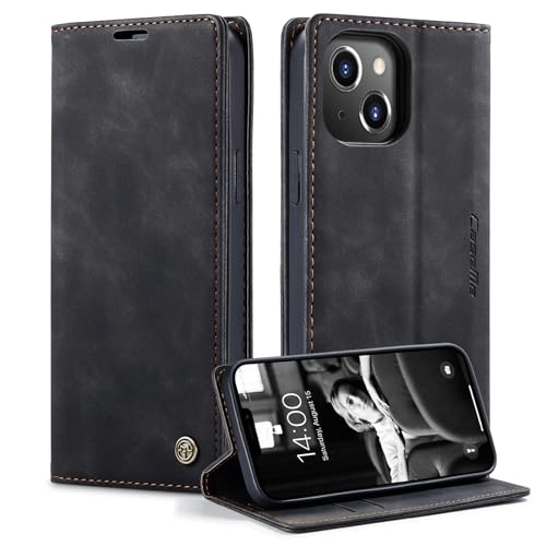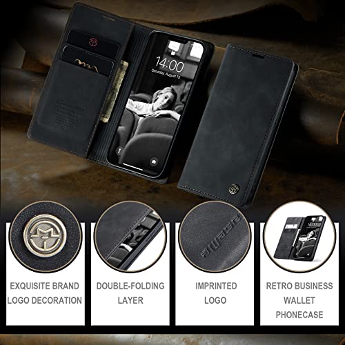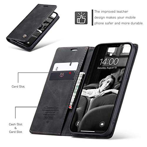 UNBLACK - Phone Case Cover Luxury PU Leather Design 013 Flip Cover Card Slot Holder Cover Compatible with IPhone 13 (Black)