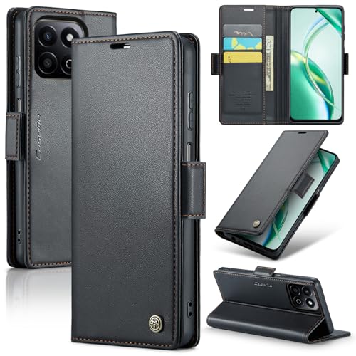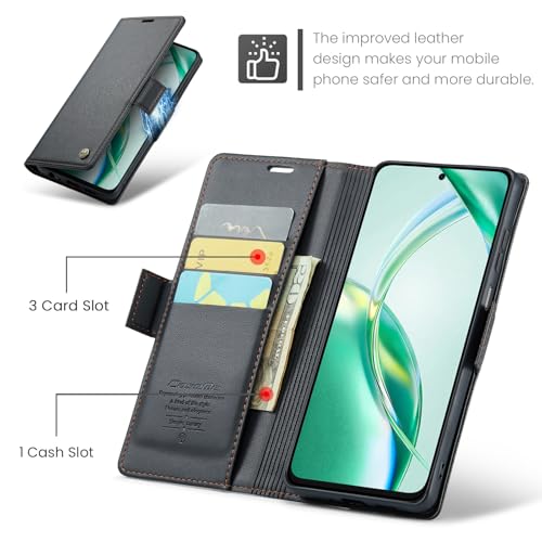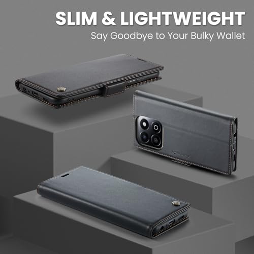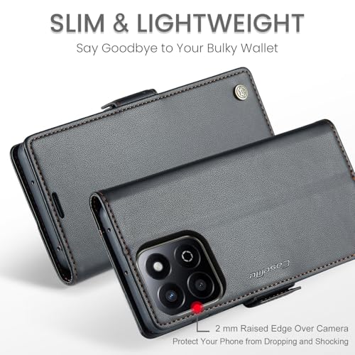 UNBLACK - Phone Case Cover Luxury PU Leather Flip Cover 023 Card Slot Holder Cover Compatible with Honor X7c / Honor 200 Smart (Black)