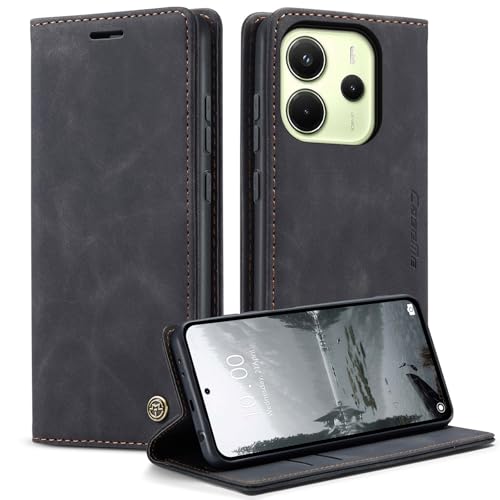 UNBLACK - جراب موبايل متوافق مع شاومي ريدمي نوت 14 شبكة الجيل الرابع 4G عالي الكفاءة من جلد صناعي 013 - حافظة بغطاء قابل للفتح مزودة بفتحة لحفظ البطاقات من يونبلاك، أسود