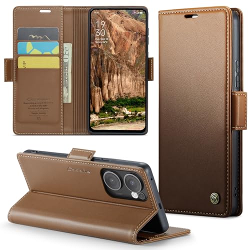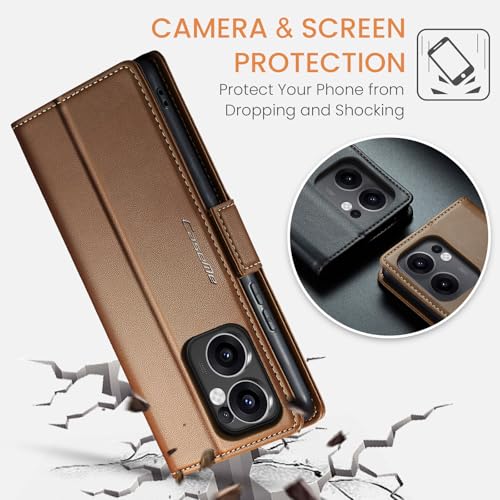 UNBLACK - جراب حماية للموبايل من الجلد الصناعي 023، غطاء قلاب بفتحة للبطاقات متوافق مع موبايل أوبو رينو 13F من انبلاك (بني)