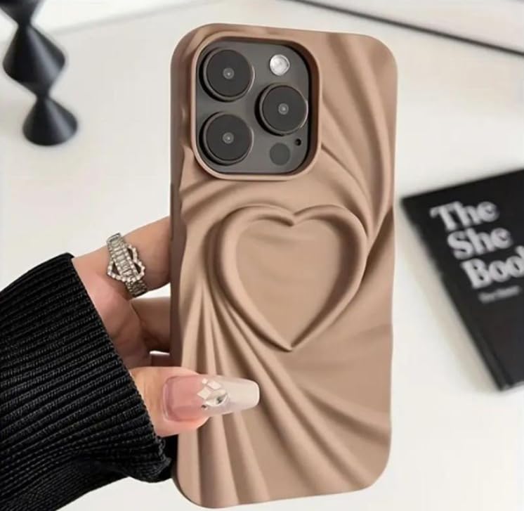 Generic - جراب هاتف 14 برو ماكس، لطيف للغاية بتصميم قلب حب مطوي ثلاثي الأبعاد، XR، غطاء سيليكون ناعم بنمط قابل للطي غير لامع، لون بني
