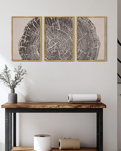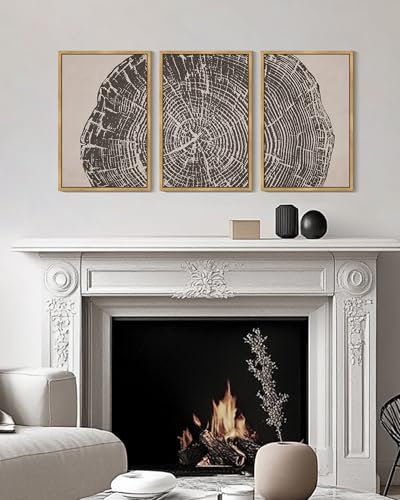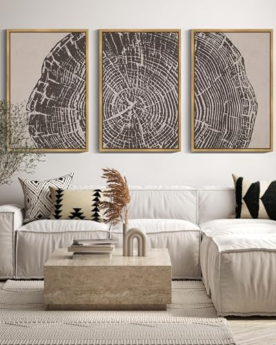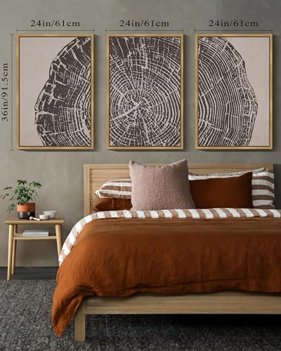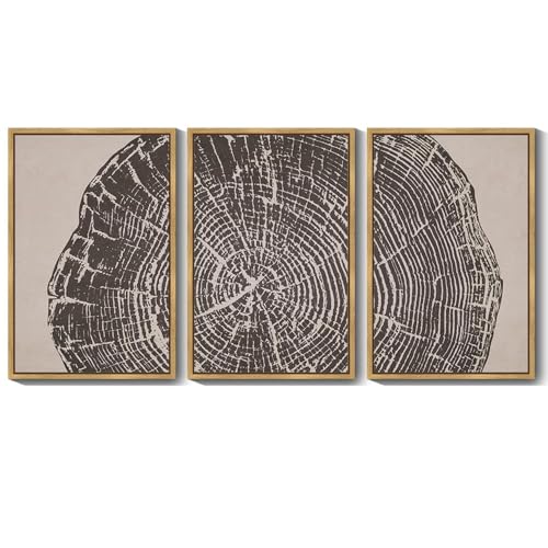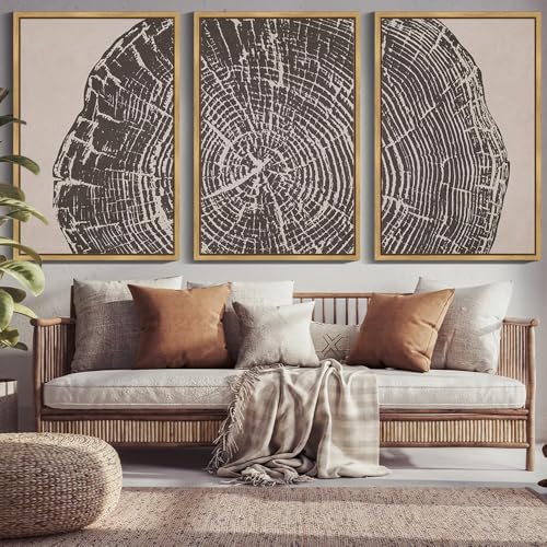 PHOPAGO - بي اتش او بي اي جي او لوحة فنية جدارية باطار عتيق مقاس L 24 × 36 انش، مجموعة حلقات شجرة خشبية رمادية، رسومات تجريدية طبيعية ريفية، ديكور فني حديث لغرفة المعيشة وغرفة النوم - اطار طبيعي