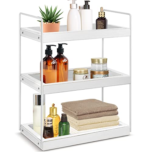 PICKKROSS - 3 Tier Bathroom Counter Organizer, Wood Bathroom Organizer Countertop Storage Shelf, Bathroom Trays for Counter, Standing Rack Skincare Organizer Cosmetic Holder, Kitchen Spice Rack