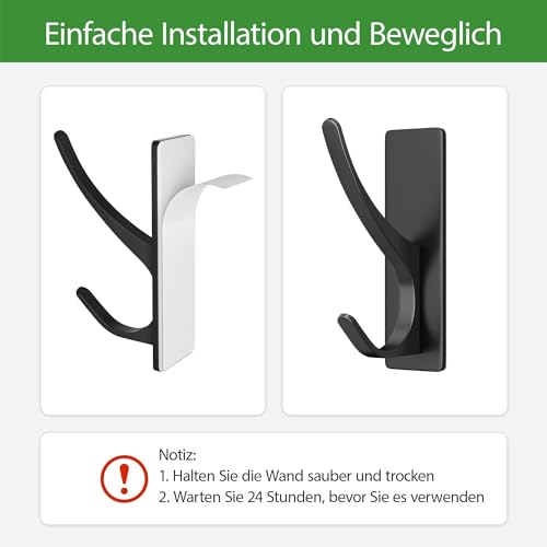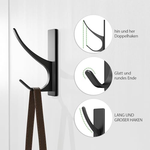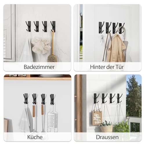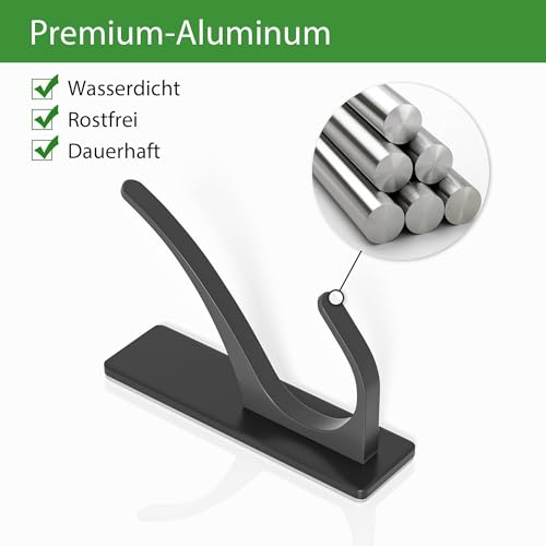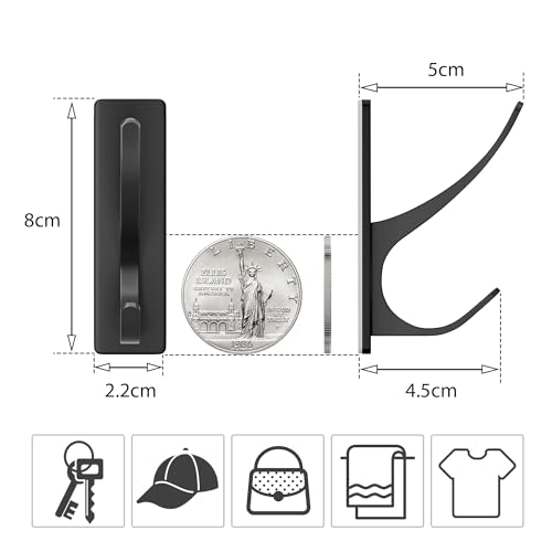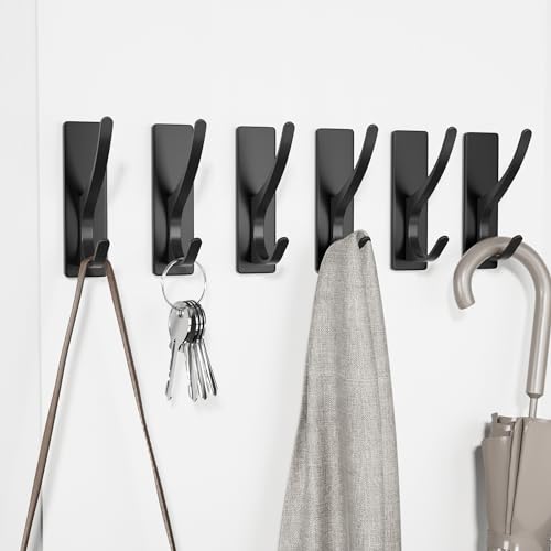 pickpiff - pickpiff Adhesive Hooks, Extra Strong, Holds up to 6 kg, Metal Door Hooks, Towel Hooks, Rustproof, Self-Adhesive Hooks, Shower Hooks, No Drilling, Black, Pack of 6