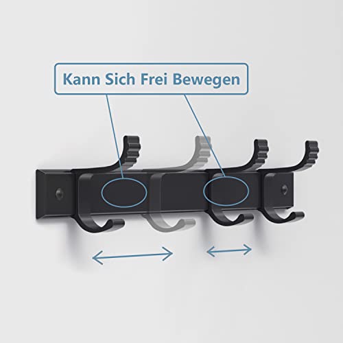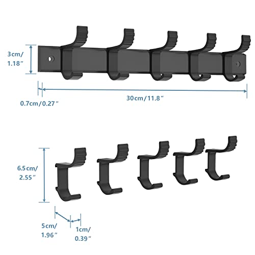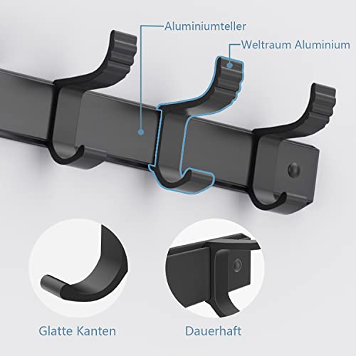 pickpiff - pickpiff Coat Hooks, Black Coat Hooks, Wall, Coat Rail, Matt Vintage, Clothes Hooks, Small, No Drilling, Modern 5 Hooks Stainless Steel, 30 cm Clothes Hooks Coat Rack