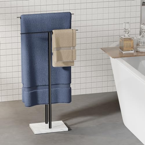 pickpiff - حامل مناشف بتصميم رخامي بلون اسود من بيكبيف، حامل منشفة قائم للحمام، 85 × 44.5 × 17.5 سم
