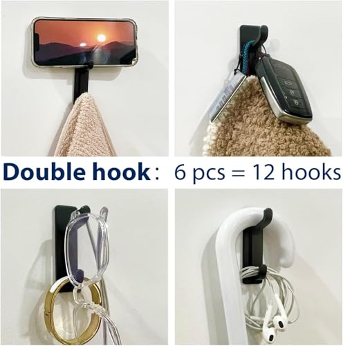 pickpiff - خطافات ذاتية اللصق للتعليق، خطاف منشفة مقاوم للماء للحمام، شماعات حائط سوداء للاستحمام والمعطف والباب والروب، لاصق وشديد التحمل، 6 قطع، منبيكيفف، معدن