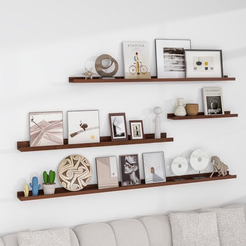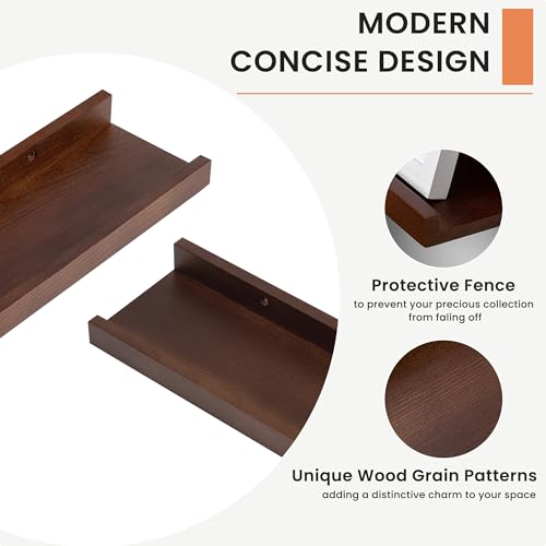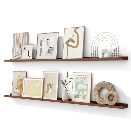 Acovy - مجموعة رفوف عائمة من خشب الرماد الصلب مقاس 72 انش مكونة من قطعتين تثبت على الحائط لغرفة المعيشة وغرفة نوم الاطفال، لون الجوز