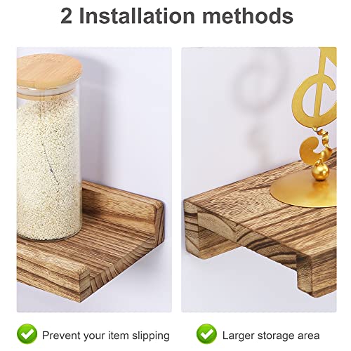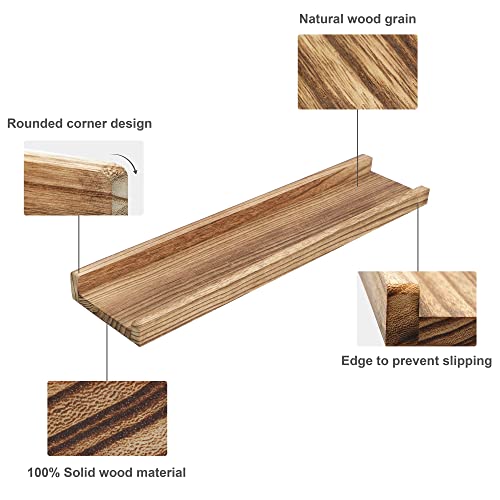 - 【Reliable Material】All long floating shelves are made of 100% natural solid wood, healthy and odorless,no formaldehyde.The material is lightweight but sturdy and durable,so each picture shelf can holds up to 25lbs.The surface is finished by beautiful burnt wood texture,they will add some rustic country feel to your room.