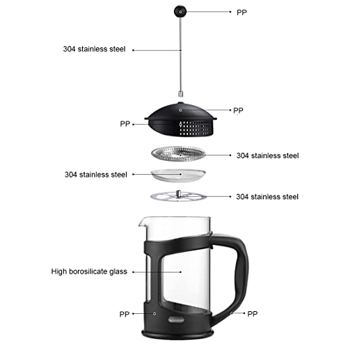 - ☕ مصنوعة من زجاج البوروسيليكات عالي الجودة، ماكينة تحضير القهوة الفرنسية الخاصة بنا قادرة على تحمل الماء المغلي دون الاعوجاج أو التشقق