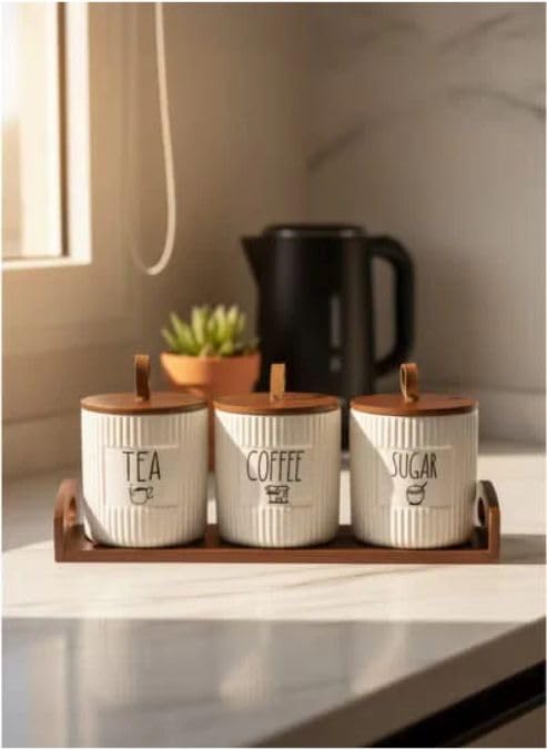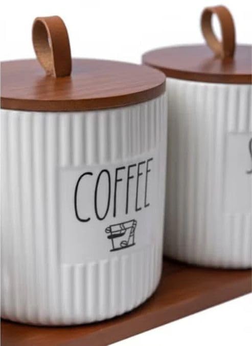 - AIRTIGHT STORAGE: Wooden-lidded canisters preserve the freshness of tea, coffee, and sugar with secure sealing mechanism.