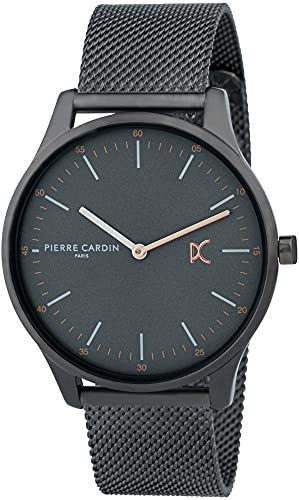 Pierre Cardin - ساعة للرجال من بيير كاردان، موديل CBA.4014، تناظري، بمينا رمادي، بسوار أسود