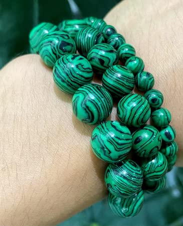 PIERRETOILES - PIERRETOILES Bead Strand Approximately 40 cm DIY Bracelet Making Making Kit Jewellery Natural Beads (MALACHITE, 10 mm)
