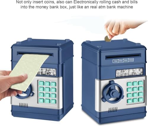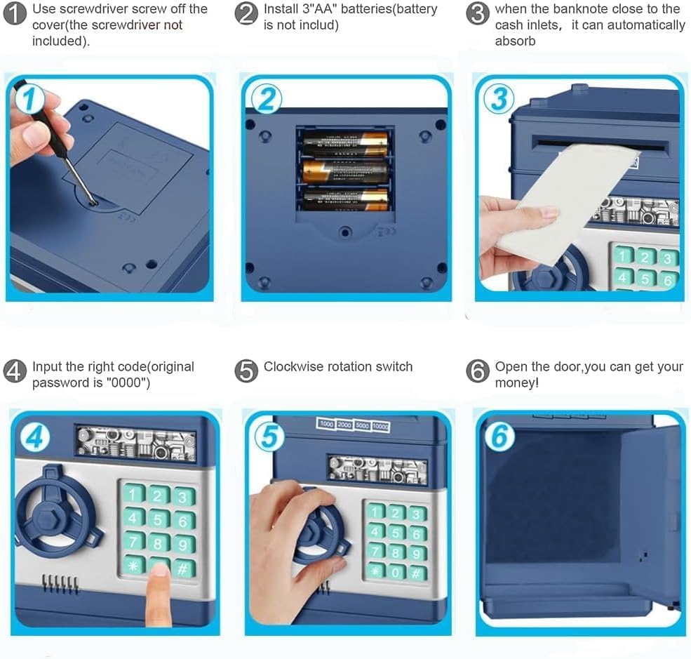 - Password Protection: In order to keep children's money safe, this electronic piggy bank requires a 4-digit password protection to open (default password is 0000), and children can set their favorite new password at any time. If they forget, they can remove the battery for about 15 minutes and the password safe box will return to its default settings